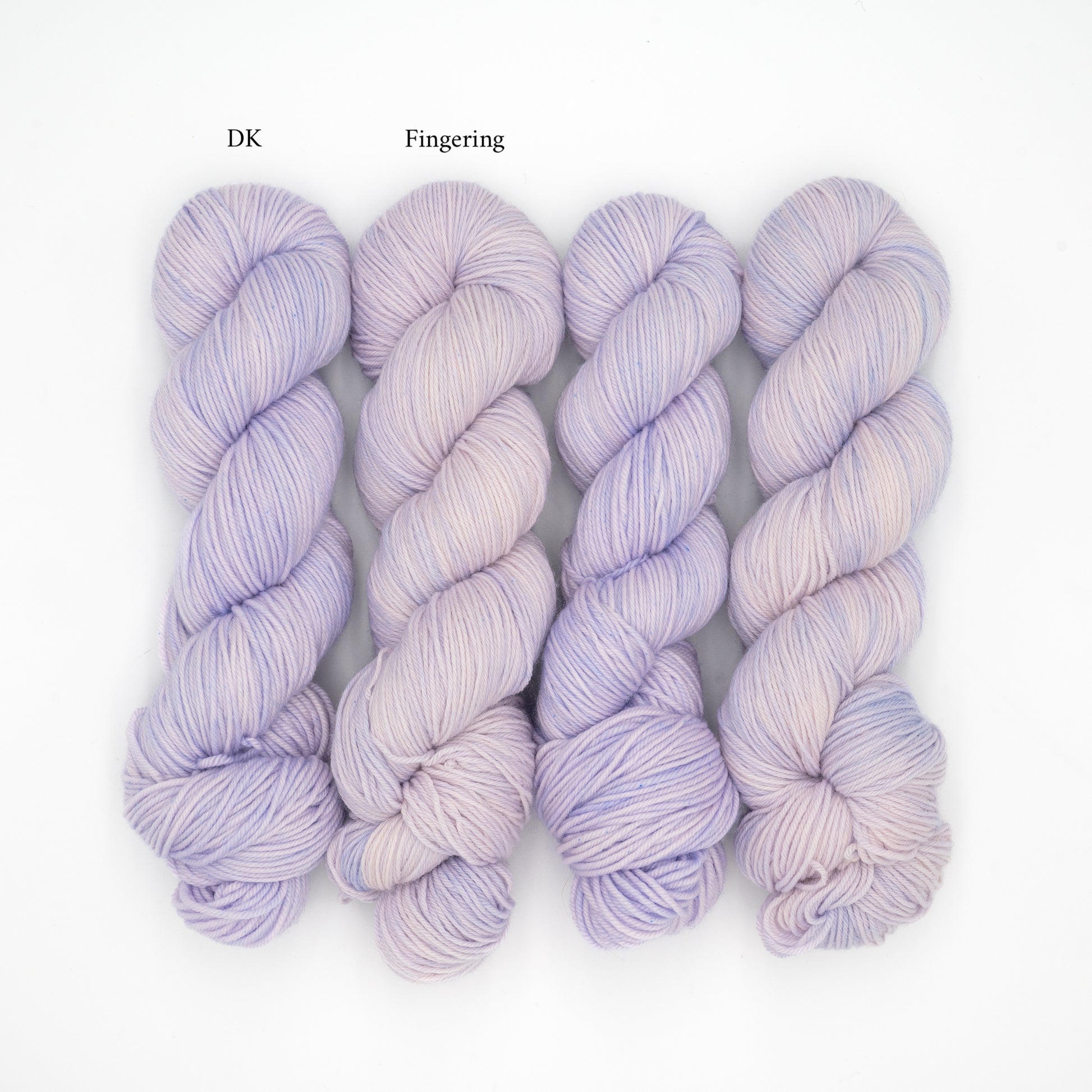 (There is a slight difference in color between the fingering and DK weight due to the difference in composition of the bases)